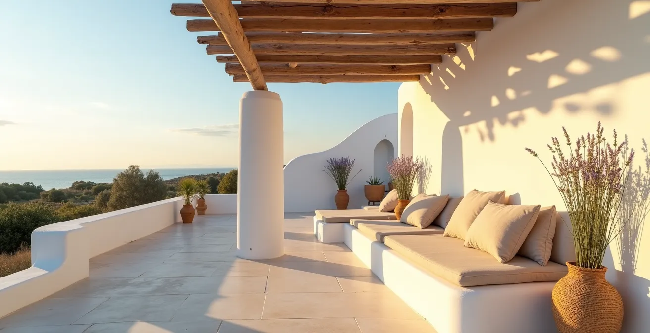 Pero, ¿y si la verdadera clave no fuera imitar visualmente una casa de playa, sino recrear sus sensaciones? El verdadero estilo ibicenco es una filosofía «slow living» que se siente en la piel: el frescor de un suelo de barro, la textura imperfecta de una pared encalada, el aroma de las plantas autóctonas. La esencia no está en lo que se ve, sino en cómo se vive el espacio. Este es un lujo sensorial, no visual. Se trata de entender la sabiduría de la arquitectura vernácula y adaptarla con elegancia a un contexto contemporáneo.