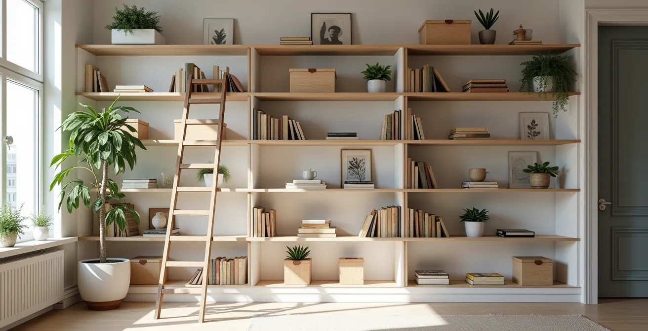 El reto no es simplemente «colocar baldas más arriba». Es una ciencia que combina la ingeniería doméstica con el diseño de interiores. Implica comprender la integridad estructural de una pared de pladur, la ergonomía vertical para acceder a objetos a 2.5 metros de altura sin riesgo, y el arte de iluminar para que una pared de almacenaje se convierta en un punto focal en lugar de un bloque opresivo. Este enfoque transforma metros cúbicos ignorados en un activo valiosísimo, un trastero integrado que puede ahorrarte el coste y la molestia de soluciones externas.
