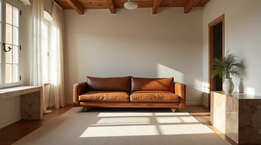 Un espacio monocromático puede resultar plano sin variedad textural. Mezclar superficies —madera natural, lino, cerámica, metal— añade riqueza sensorial sin necesidad de multiplicar colores. En el contexto español, materiales como el barro cocido, la forja o el esparto conectan con nuestra tradición artesanal y aportan autenticidad. Un salón con paredes lisas gana interés al incorporar un sofá de terciopelo, una alfombra de yute y cojines de lino lavado.